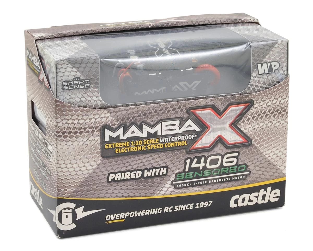 The Castle Creations Mamba X 1/10 Brushless Combo includes the Mamba X, with the awesome 1406 Sensored motor to create a all in one system perfect for 1/10 scale 2wd short course trucks, stadium trucks and buggies up to 5 pounds, as well as touring cars up to 4 pounds.