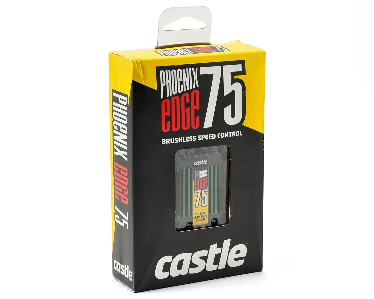 This is the Castle Creations Phoenix Edge 75 32V 50-Amp ESC. The next evolution in speed controller technology has arrived With the debut of the Phoenix Edge series ESC’s. The Edge series features a user programmable auxiliary wire capable of functions modelers have only dreamed of, until now. The white auxiliary wire can be used for helicopter governor gain input adjustments mid-flight, serve as an audible beacon after an “unexpected landing”, act as an RPM output for 3-axis gyros that support RPM sensors, be used as an ESC arming lock (Arming Lockout Key required – not included) or as a receiver arming lock. Combined with the data logging capability the Edge series of controllers offer, users can enjoy unparalleled versatility.