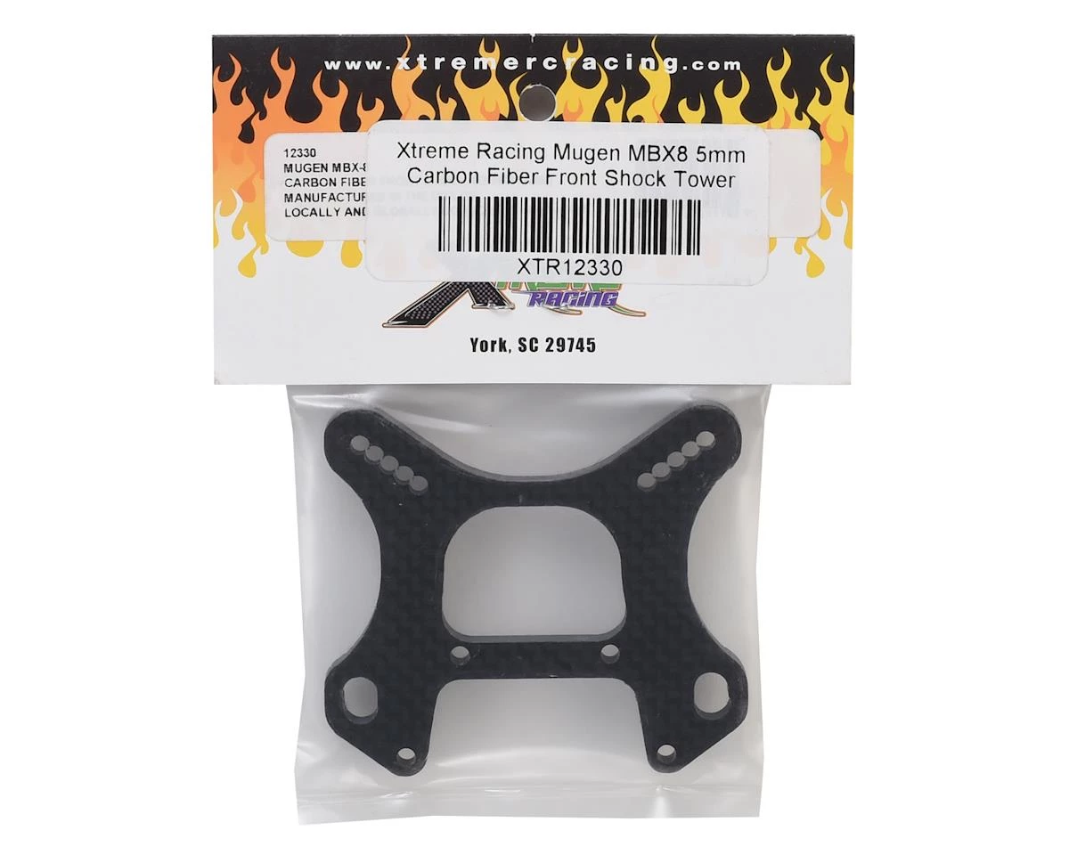 This is an optional Xtreme Racing 5mm Carbon Fiber Mugen MBX8 Front Shock Tower. This tower is made in the USA from 5mm thick carbon.