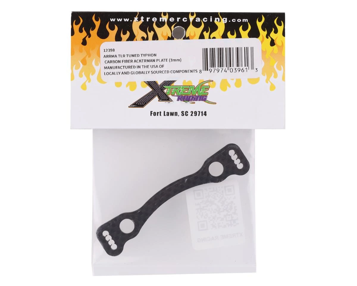 Xtreme Racing Arrma Typhon “TLR Tuned” 3mm Carbon Fiber Steering Rack. This optional rack is intended for the Arrma Typhon “TLR Tuned”. Made from 3mm thick carbon fiber, this features four different mounting positions for ackermann tuning. Package includes one steering rack.