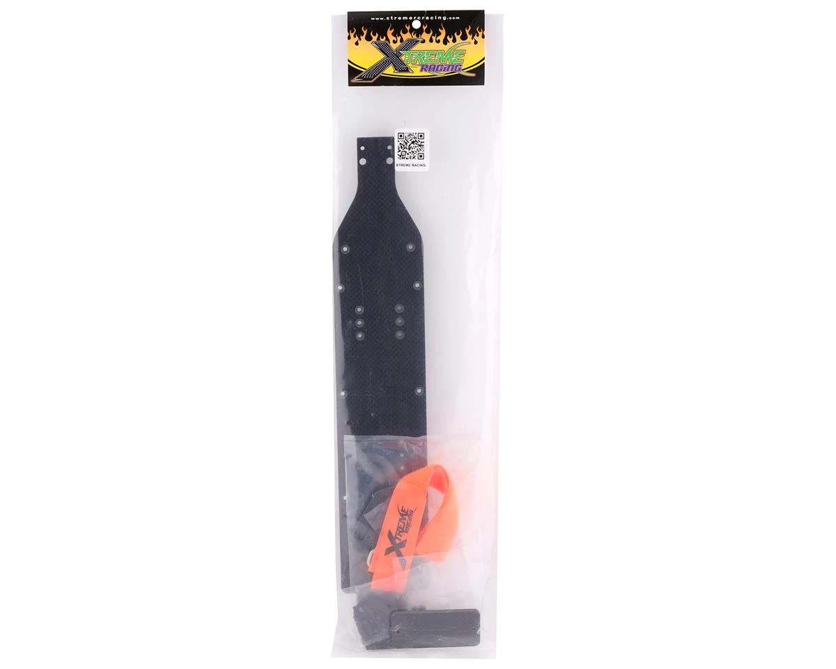 The Xtreme Racing Associated RC10B6 Carbon Fiber Drag Chassis Kit is a great way to convert your buggy into an all out drag build. Made from high quality 3mm carbon fiber and designed to work with the Team Associated RC10 B6 Builders kit, B6.1, B6.2 and B6.3. This kit uses a 0° kick up chassis and lengthens the wheelbase to 13.4″ aiding in straight line performance. While this kit will require some modification to stock B6 components, it will all come together in a clean build. Use your B6 series chassis and get this chassis kit to start laying down fast passes in no time.