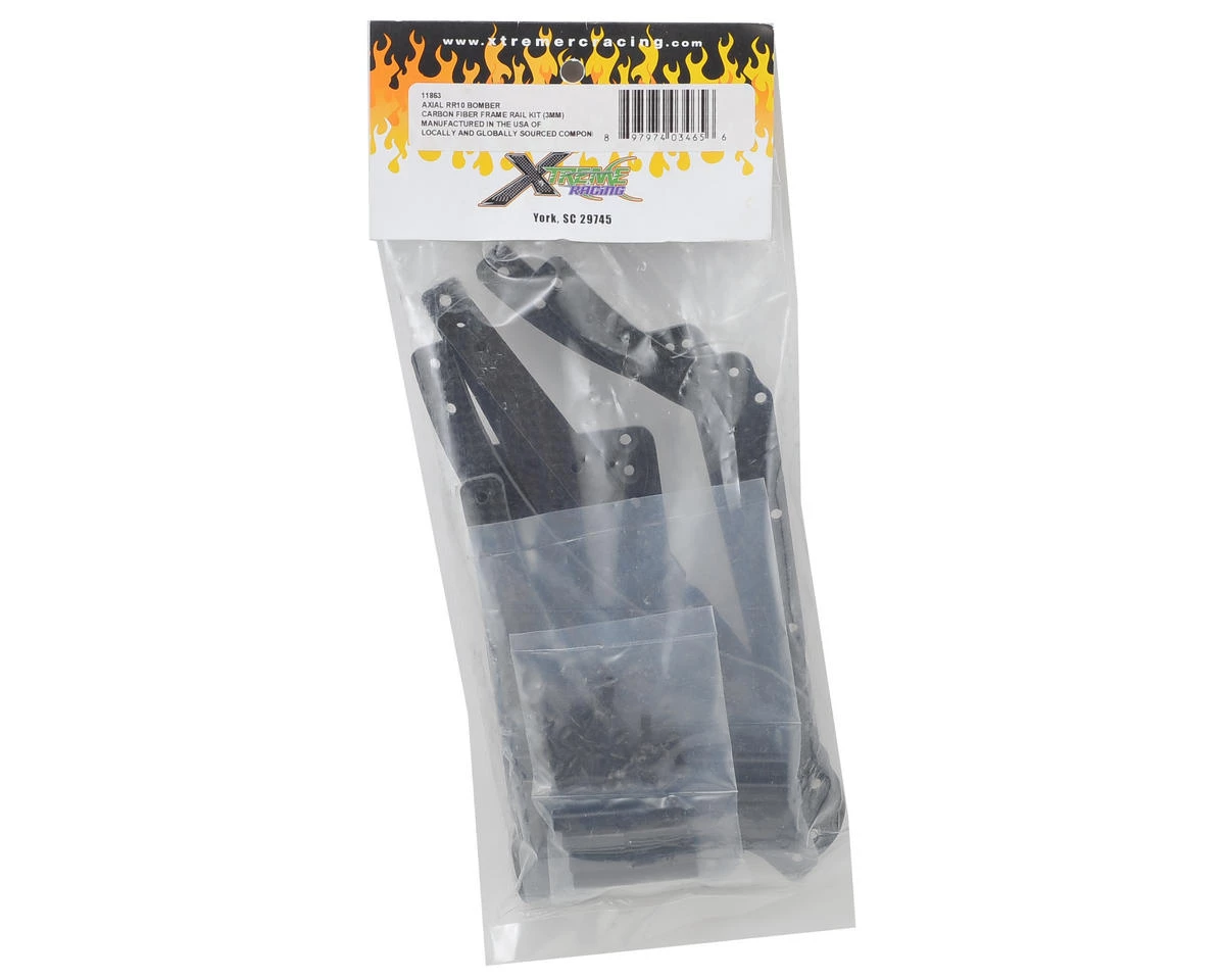 The Xtreme Racing Axial RR10 Bomber 3mm Carbon Fiber Frame Rail Kit allows you to add a truck style frame to your Bomber. The design allows you to mount the battery in the front or the rear, giving you the option of running 1.9″, 2.2″ or monster truck tires so you can build the rig of your dreams. Like all Xtreme products, this is made with precision and pride in the USA.