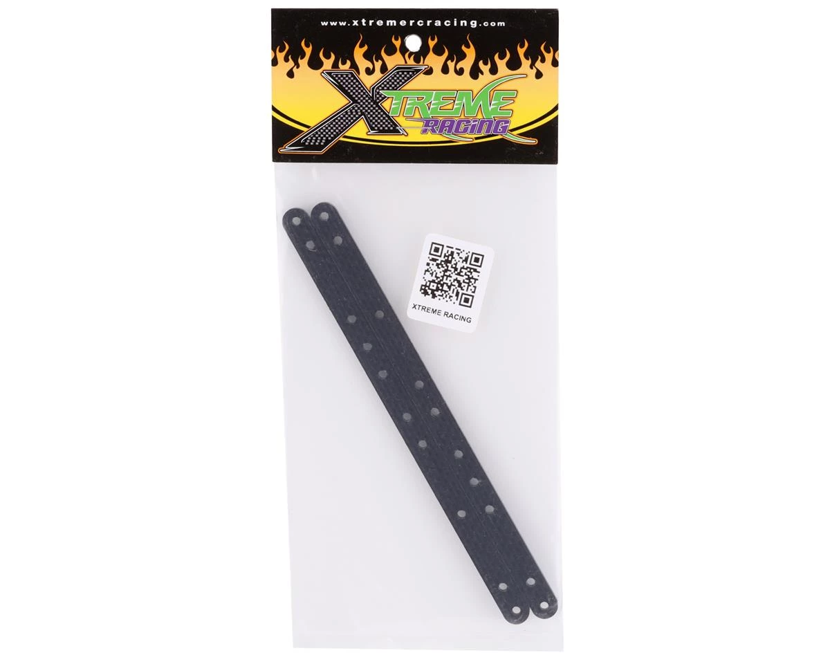 Xtreme Racing Drag Chassis Carbon Fiber Side Rails. These replacement side rails are intended for the Xtreme Racing Rustler/Slash Drag Chassis (XTR10656). Package includes two carbon fiber rails.