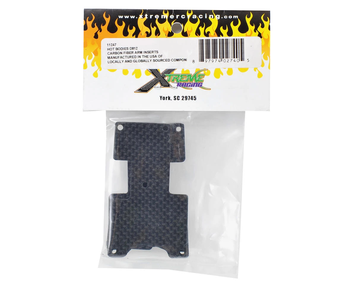 This is a pack of four optional Xtreme Racing Hot Bodies D812 1.6mm Carbon Fiber Arm Inserts. These are direct replacements for the stock parts.