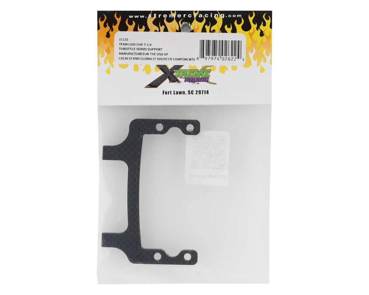 Xtreme Racing Losi 5IVE-T 2.0 Throttle Servo Support. This optional carbon fiber servo support is intended for the Losi 5IVE-T 2.0. Package includes one throttle servo support.
