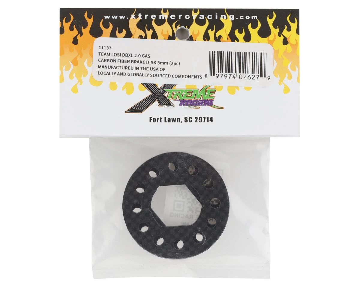 Xtreme Racing Losi DBXL 2.0 Carbon Fiber Brake Disk. These optional brake disks are intended for the Losi DBXL 2.0. Made from carbon fiber, these allow greater heat dissipation and are more resistant to fade. Package includes two brake disks.
