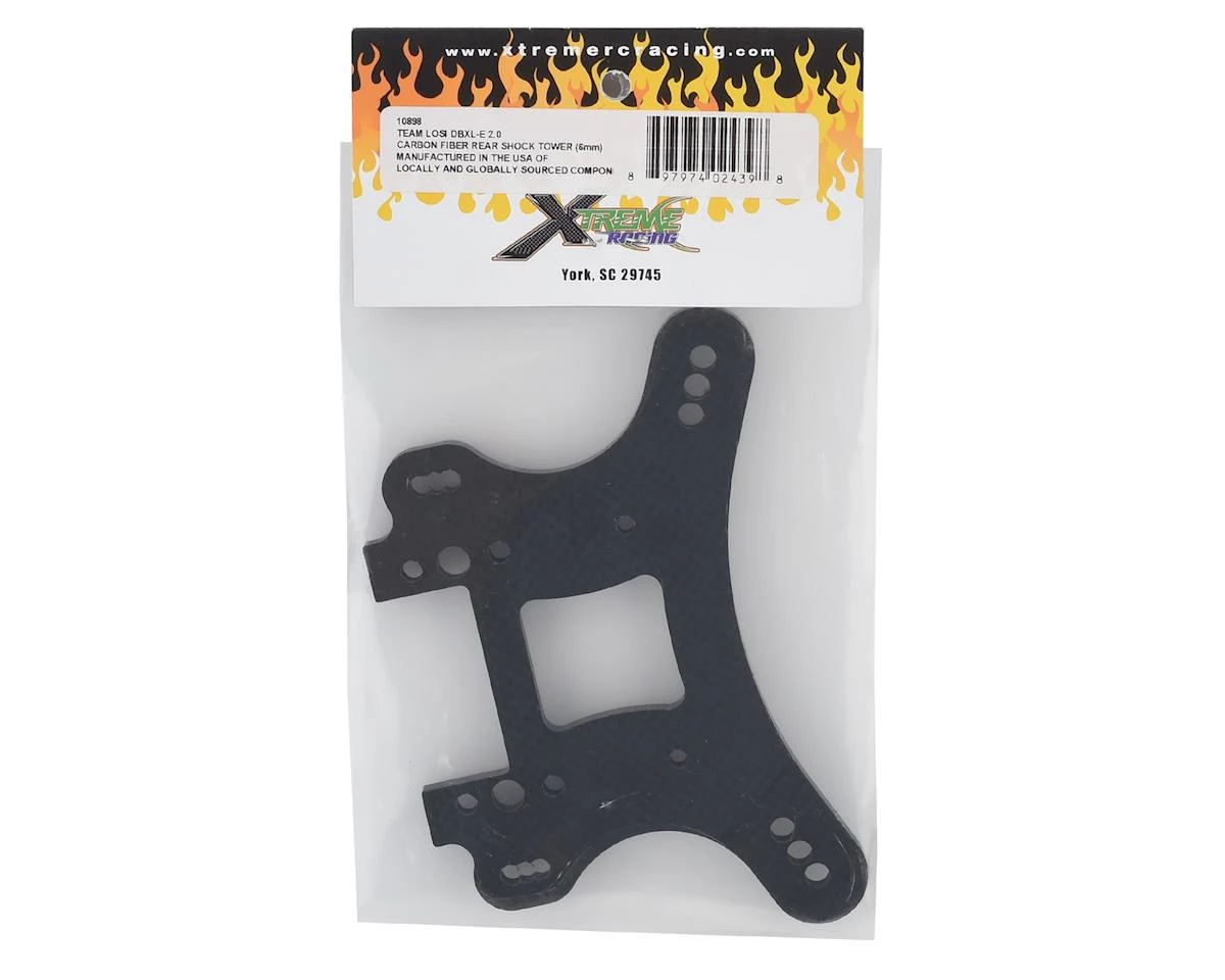 The Xtreme Racing Losi DBXL-E 2.0 6mm Carbon Fiber Rear Shock Tower is a direct replacement upgrade for the stock aluminum tower. Precision machined from 6mm thick carbon fiber plate, this tower offers the same shock mount geometry, and the custom look you can only get from carbon fiber.